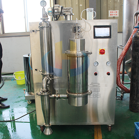1、噴霧干燥整個實驗過程在真空環境里完成,大大降低了物料干燥溫度,解決了熱敏性物料噴霧干燥的難題。