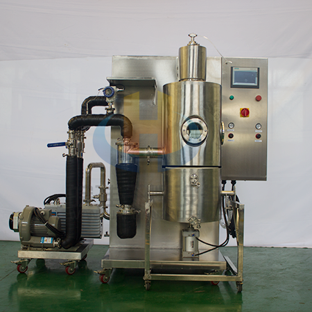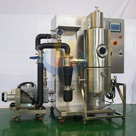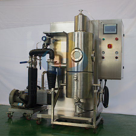 1、實驗型噴霧冷凍干燥機把噴霧干燥和真空冷凍干燥二者有機的結合起來,所需的干燥時間極短,縮短了傳統的真空冷凍干燥時間,且干燥后的物料為粉狀的固體,經噴霧冷凍干燥的物品,原有的生物、化學特性基本不變,易于長期保存,加水后能恢復到凍干前的形態,并且能保持其原有的生化特性